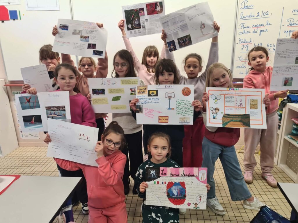 Exposés sur un sport : chaque élève a préparé un exposé sur un sport et est venu le présenter devant la classe. Même habillé en judoka. Nous avons appris plein de choses sur les différents sports : rugby, boxe, escrime, gymnastique, judo, badminton, football, basketball, équitation…