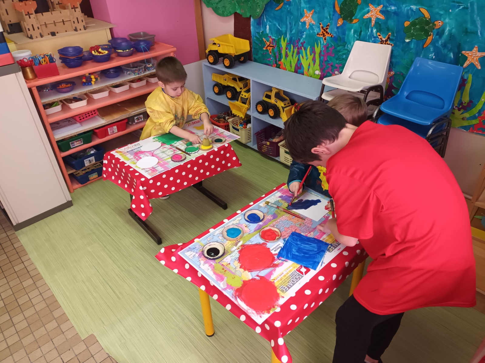 Les plus grands ont tracé et découpé les formes. Puis, tous ensemble, ils ont peint.