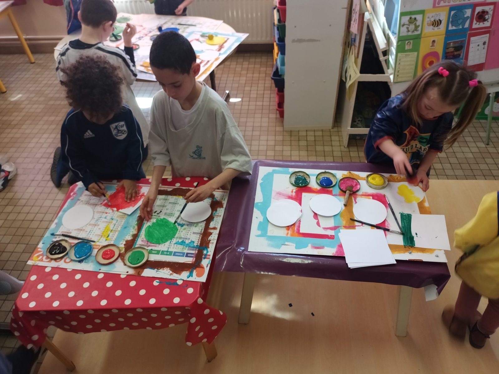 Les plus grands ont tracé et découpé les formes. Puis, tous ensemble, ils ont peint.