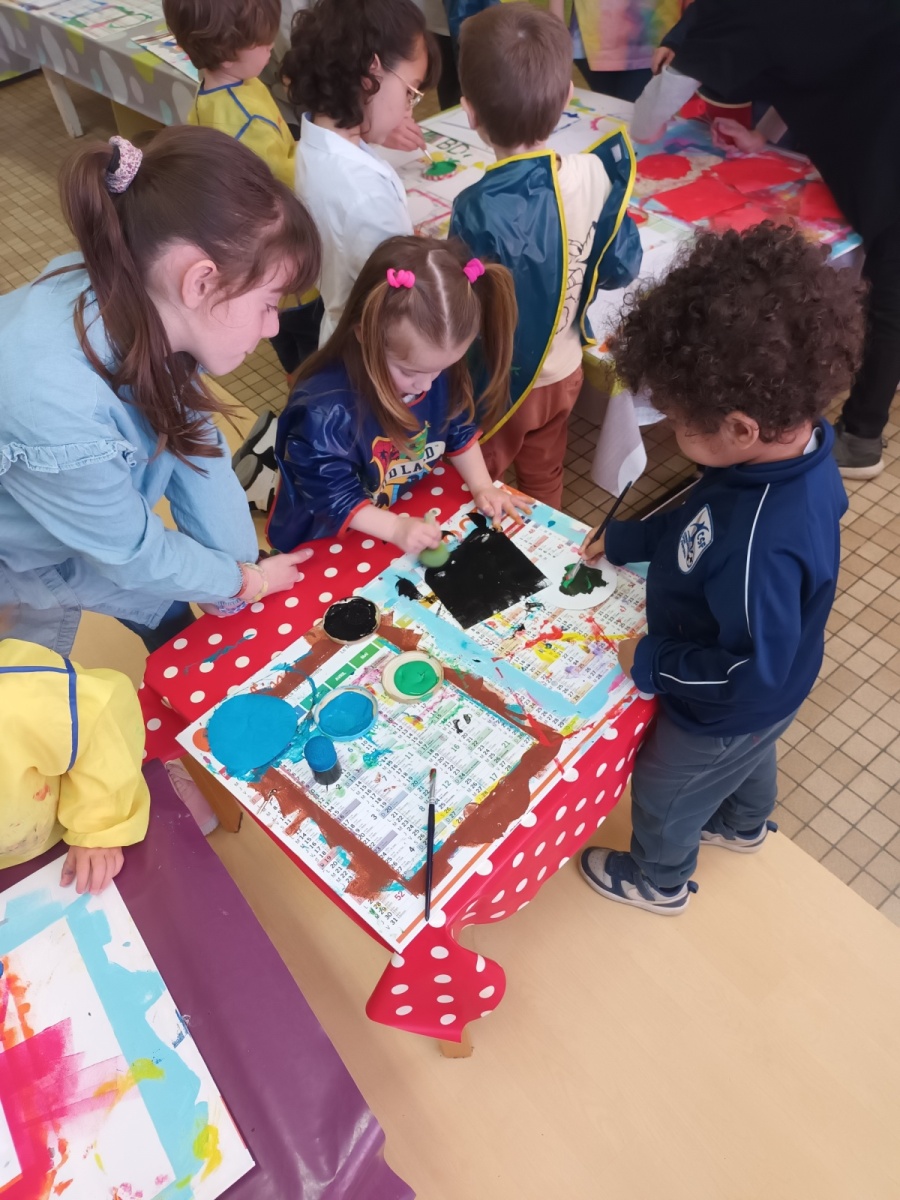 Les plus grands ont tracé et découpé les formes. Puis, tous ensemble, ils ont peint.