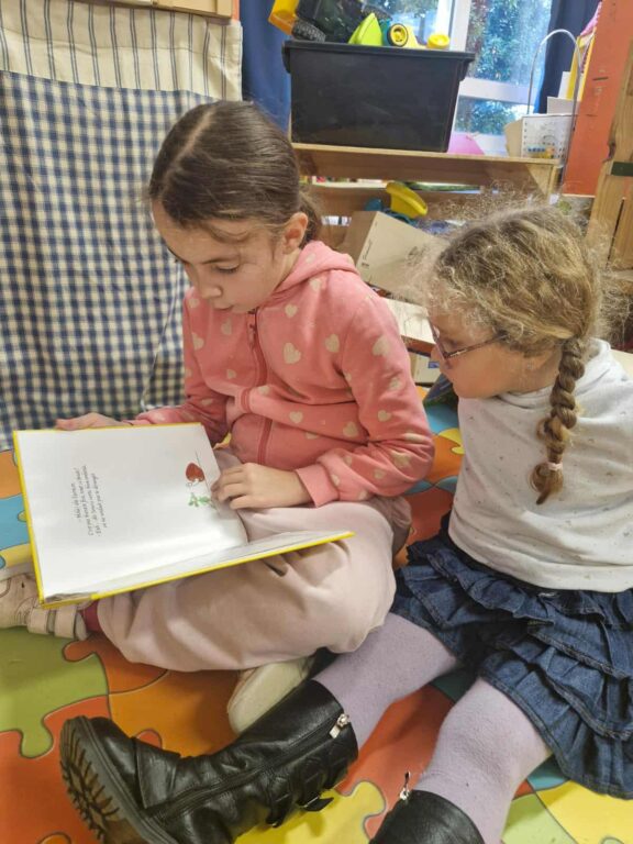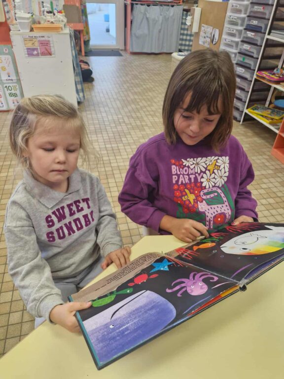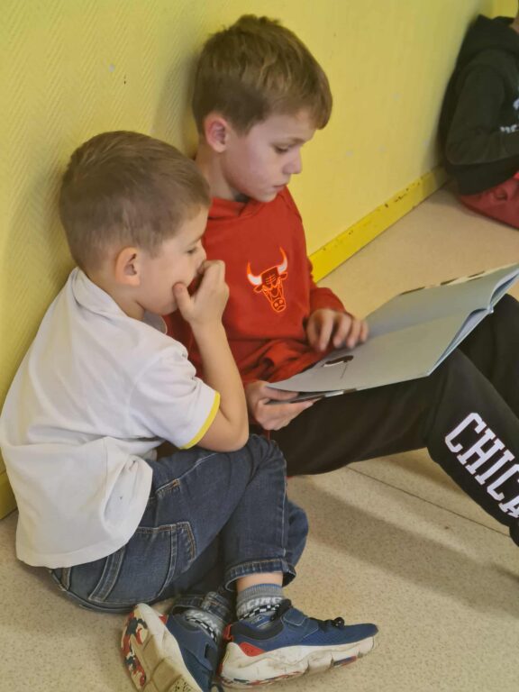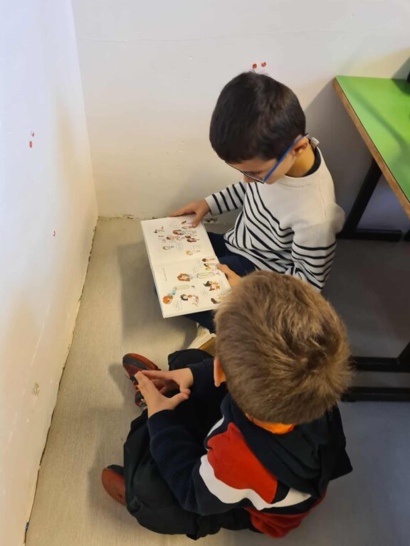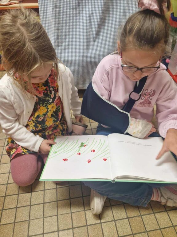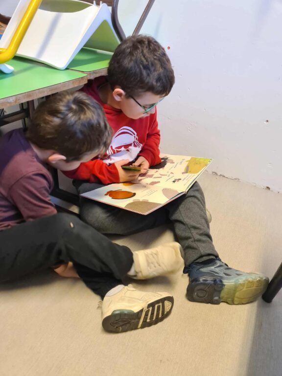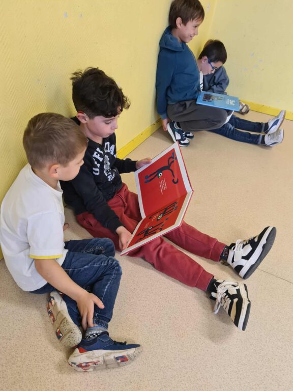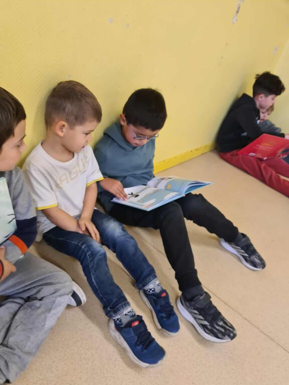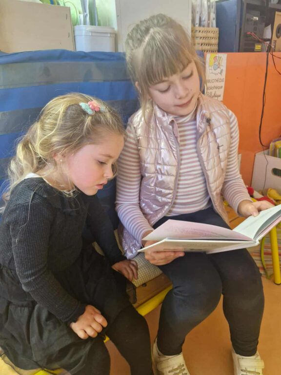 Jeudi 13 novembre, les élèves de MS et de CE2 se sont retrouvés dans la salle de motricité afin d’échanger un temps de lecture. Solène, de la bibliothèque de Soullans,  nous avait sélectionné un choix de livres adaptés. Puis en classe, les CE2 se sont entraînés à lire leur livre à voix haute, en mettant le ton, en articulant et en lisant doucement. Bien montrer l’illustration du livre également.Donner envie d’écouter et de savoir la suite… développer le suspens. Les élèves se sont ensuite répartis en 2 groupes dans la classe de Françoise et dans la salle de motricité pour ce temps de lecture : magique ! Un temps apprécié par les petits comme les grands… les CE2 se souviennent que lorsqu’ils étaient en MS, les CE2 leur lisaient des histoires. Maintenant à leur tour de transmettre aux plus petits.