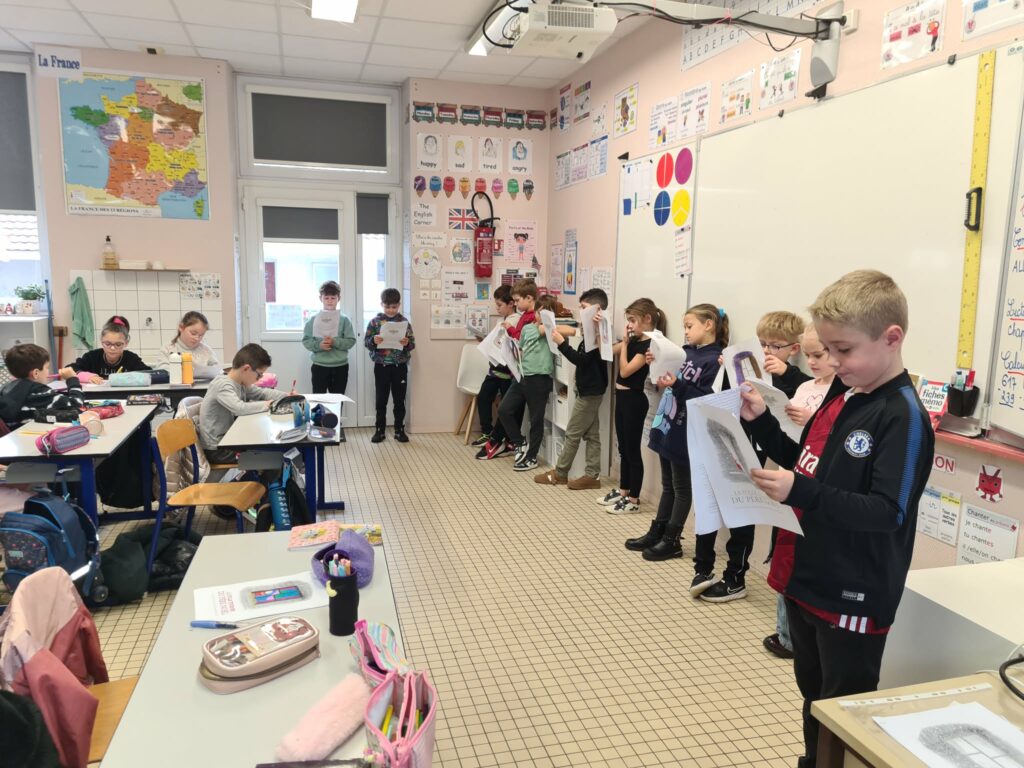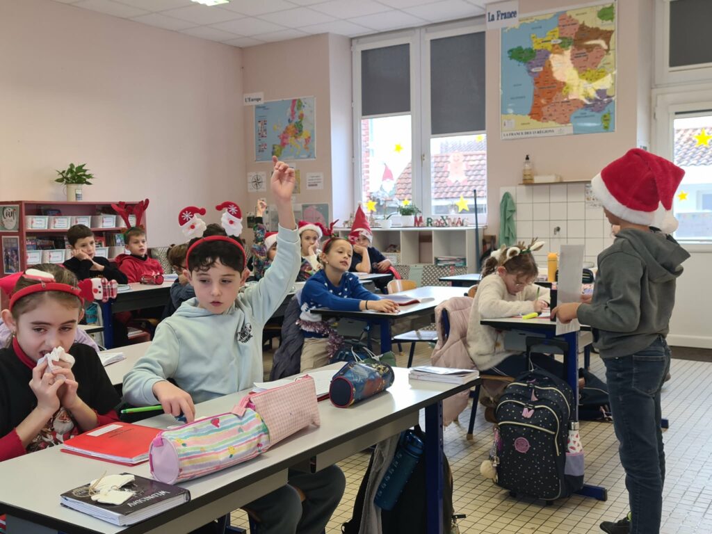 Nous nous préparons à Noël : lecture du conte “La Fabuleuse tournée du Père-Noël” que nous avons joué et mis en scène en classe,