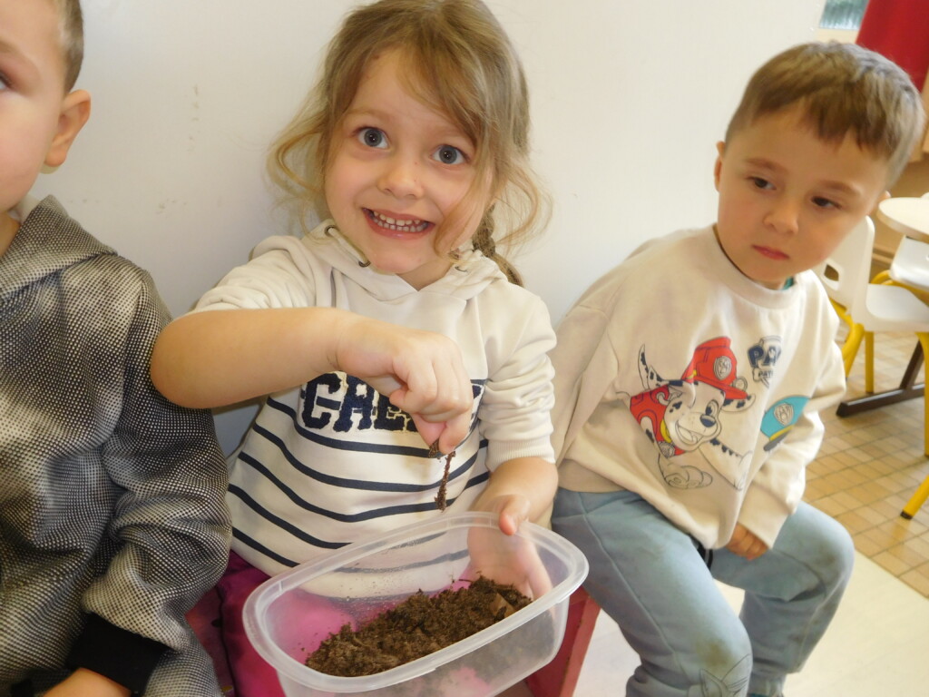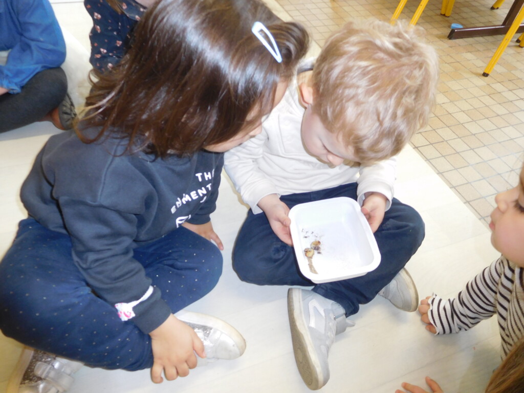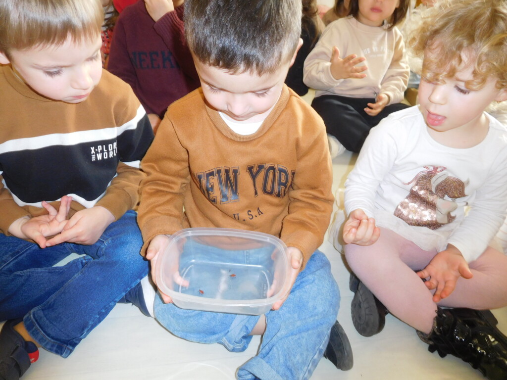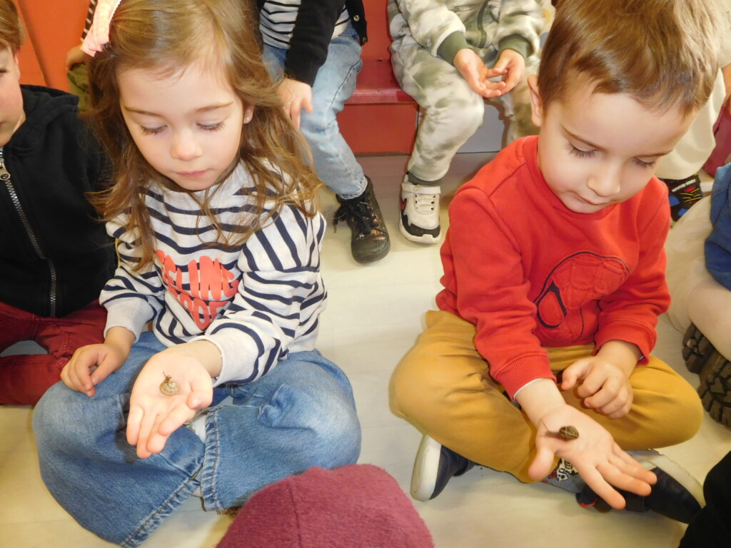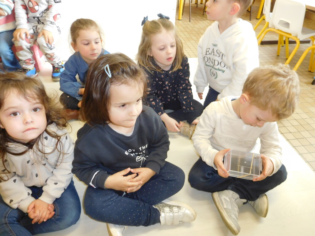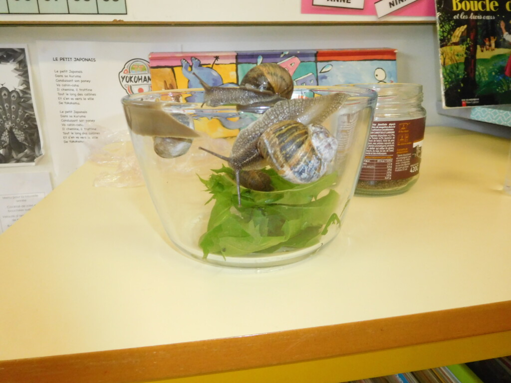 Les enfants ont apporté de nombreuses petites bêtes en classe, que nous avons pris le temps d’observer, voire de toucher ! Escargots, araignées, gendarmes, chenilles, larves de hannetons, punaises, n’ont plus de secret pour nous !
