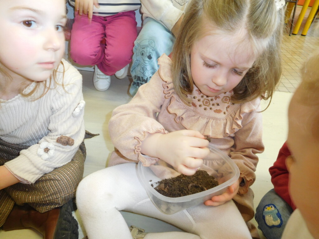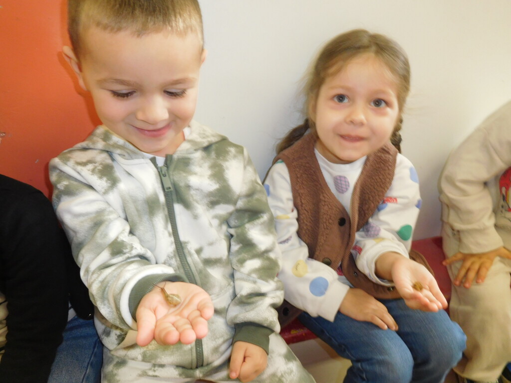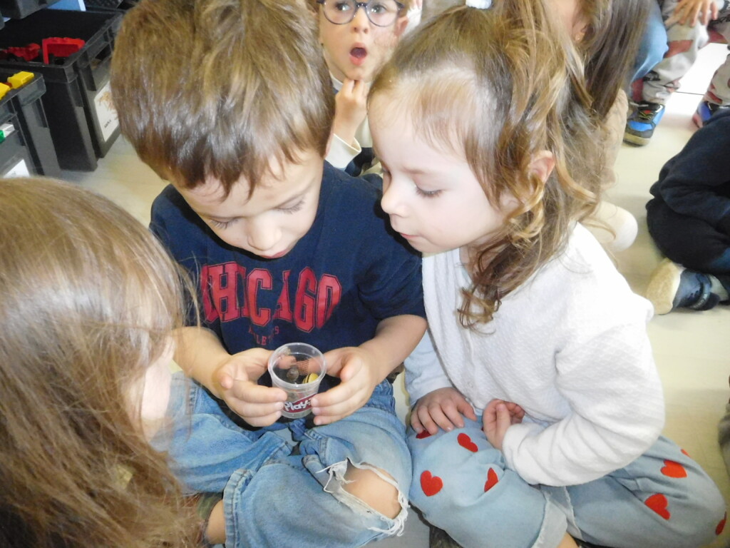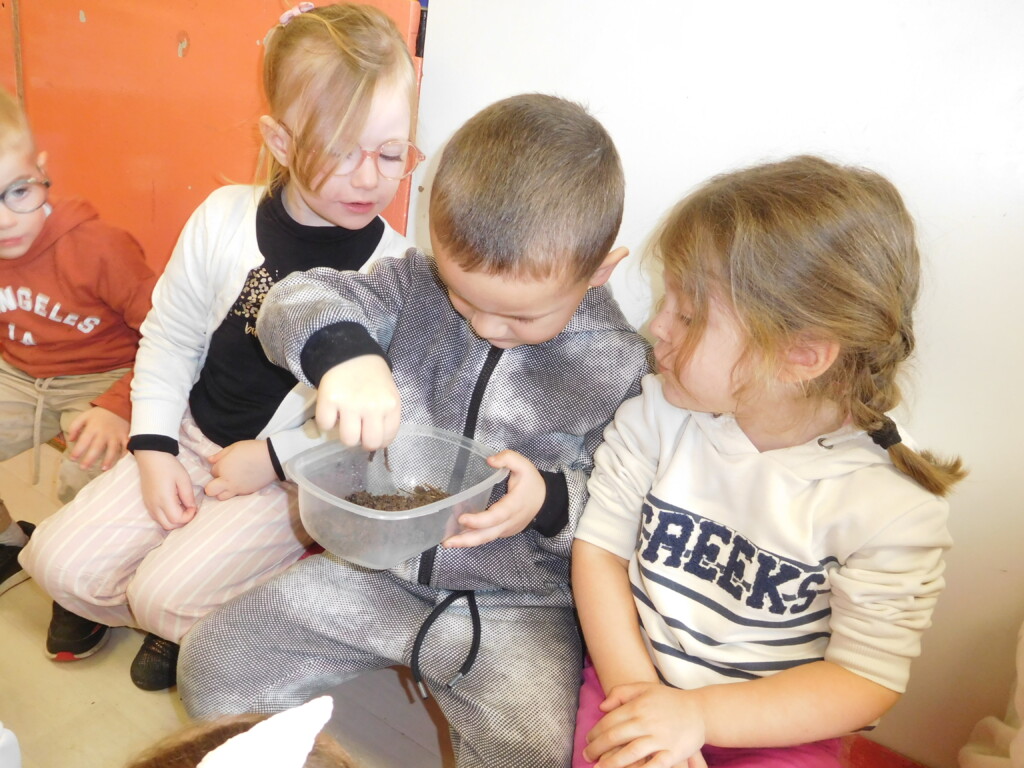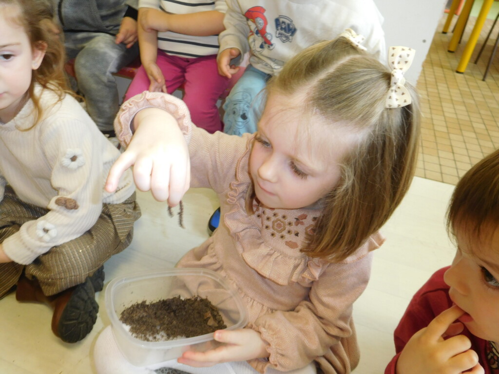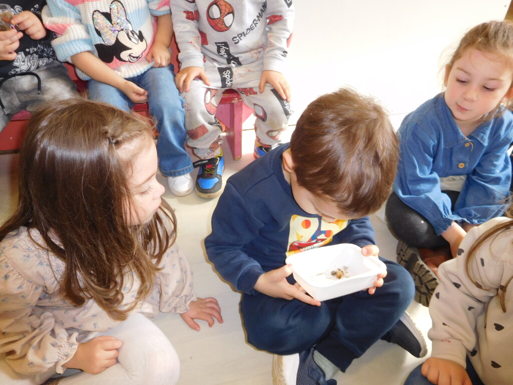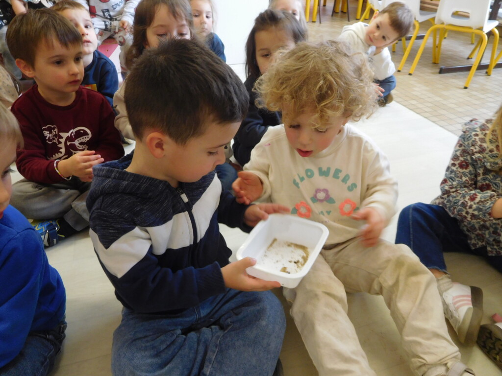 Les enfants ont apporté de nombreuses petites bêtes en classe, que nous avons pris le temps d’observer, voire de toucher ! Escargots, araignées, gendarmes, chenilles, larves de hannetons, punaises, n’ont plus de secret pour nous !