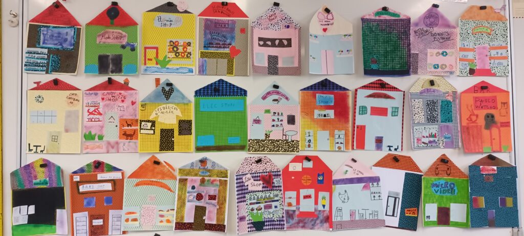 Ensemble, nous avons réalisé une balade architecturale, afin d’observer les monuments de la commune et leur évolution au fil des années. Nous avons dessiné une façade. Nous avons également découvert le cadastre et son fonctionnement.